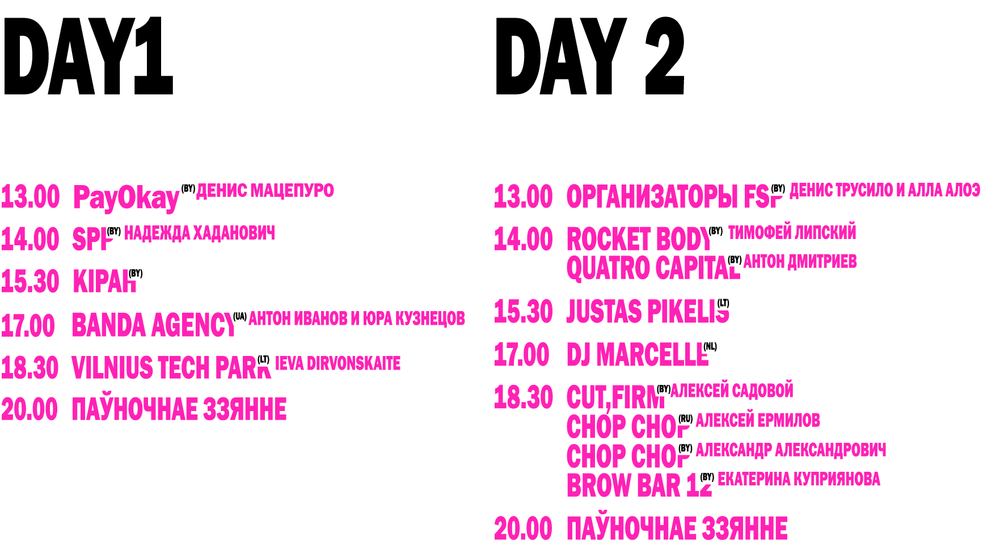 EDUTAINMENT— это образовательная площадка на FSP, которая объединяет вокруг себя представителей креативных индустрий, современных профессий, успешных стартаперов и бизнесменов. Это дискуссия о городской культуре и воздействию на неё. Это уникальная возможность узнать о городе, людях и бизнесе, влияющем на жизнь города, от первых лиц. В программе этого года: как работает музыкальная сцена Беларуси и мировой диджеинг, как делать брендинг который и работает, и собирает награды, как запустить барбершопы в России и Беларуси, превратить Литву в IT-страну и запустить в Минске свой оупен-эйр. Площадка реализована при поддержке Посольства Литвы в Беларуси совместно с платформой Headmade.