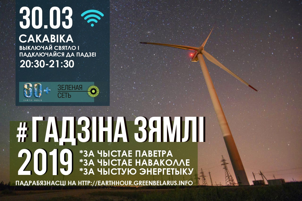В 2019 году Международный «Час Земли» состоится в 13-й раз — акция будет проведена в последнюю субботу марта — 30 числа. В Беларуси акция пройдёт в 11-й раз. Инициатором в нашей стране является Товарищество экологических организаций «Зеленая сеть».