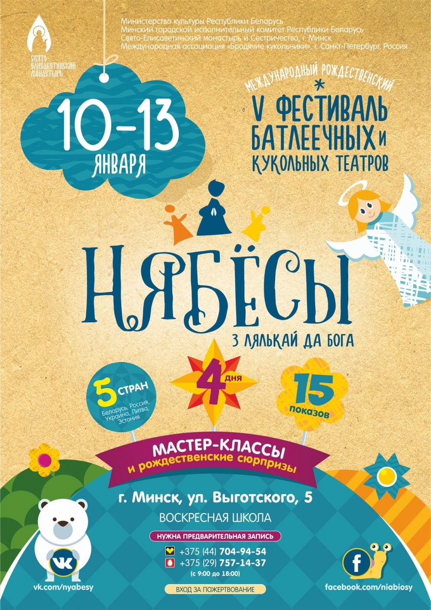 Международный Рождественский фестиваль батлеечных и кукольных театров «Нябёсы» пройдёт в Минске c 10 по 13 января 2019 года.