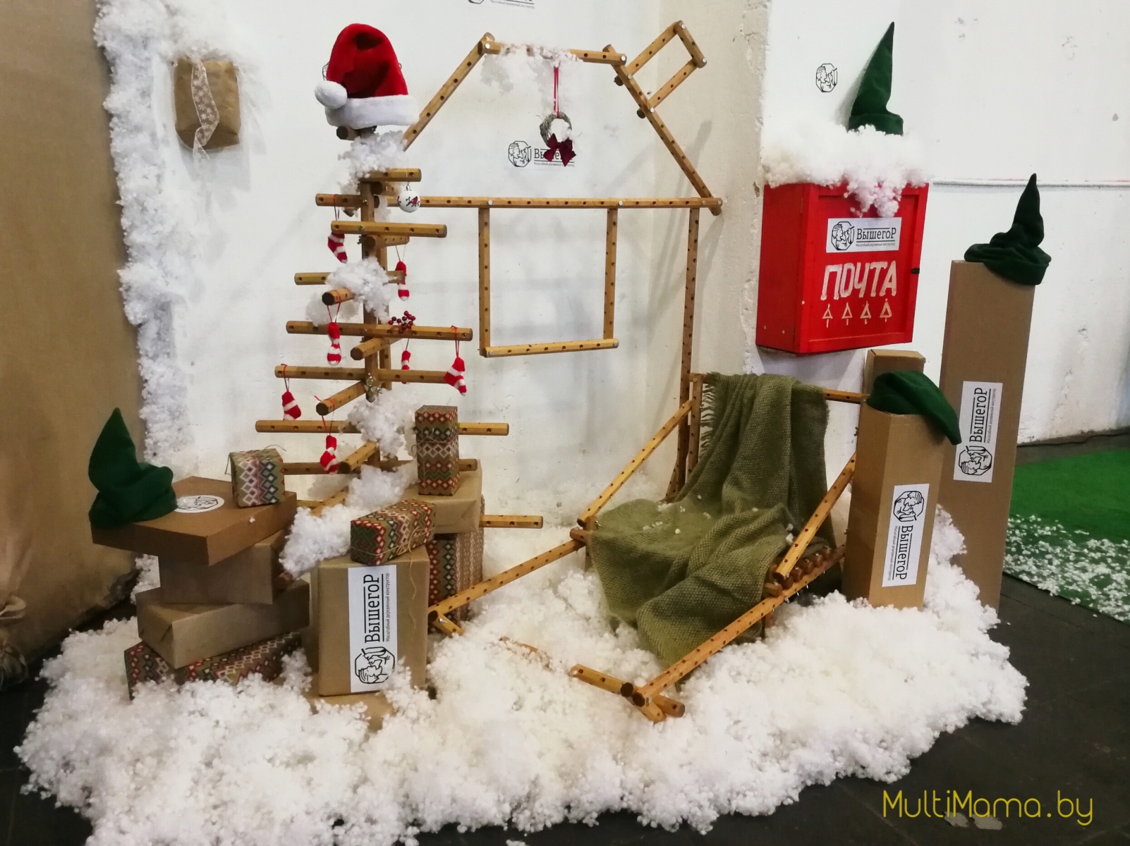 В первом зале на входе нас встречали фотозоны. Необычная, но по-новогоднему сказочная фотозона от деревянного конструктора «Вышегор» (@vishe.gor), в которой можно было почувствовать себя немного Дедушкой Морозом.