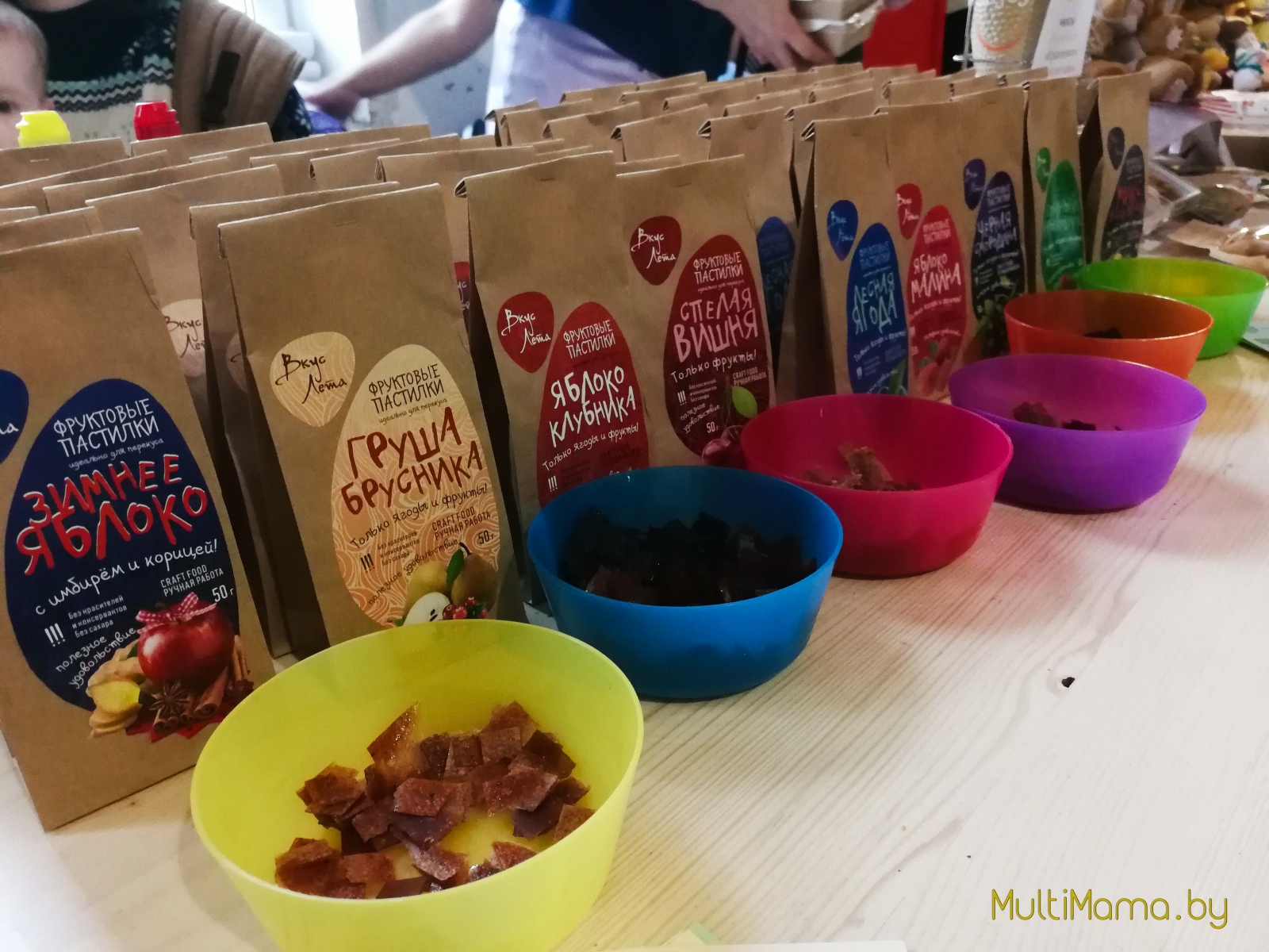 Кроме упомянутых выше картошечки от «Bulba Frites» (@Bulbafrites.by), кислородных коктейлей от Соляной пещеры «Снег» (@minsk_sneg) и пряников-свинок от Кристины Данчук (@tortik_dankris), на фестивале можно было полакомиться супчиками в съедобных стаканчиках от «Soup Culture» (@soupculture.minsk), натуральными фруктовыми пастилками ручной работы от «Вкус лета» (@vkusleta_pastilki) (мы перепробовали их почти все и поняли, что наши любимые – это почти половина вкусов), веганскими сладостями (натуральными трубочками со взбитым кремом), натуральными сушеными чипсами и хлебцами с разными вкусами. Дегустация чая для всех желающих на протяжении всего дня бесплатно (если вы не прочь с этим чаем сфотографироваться)!