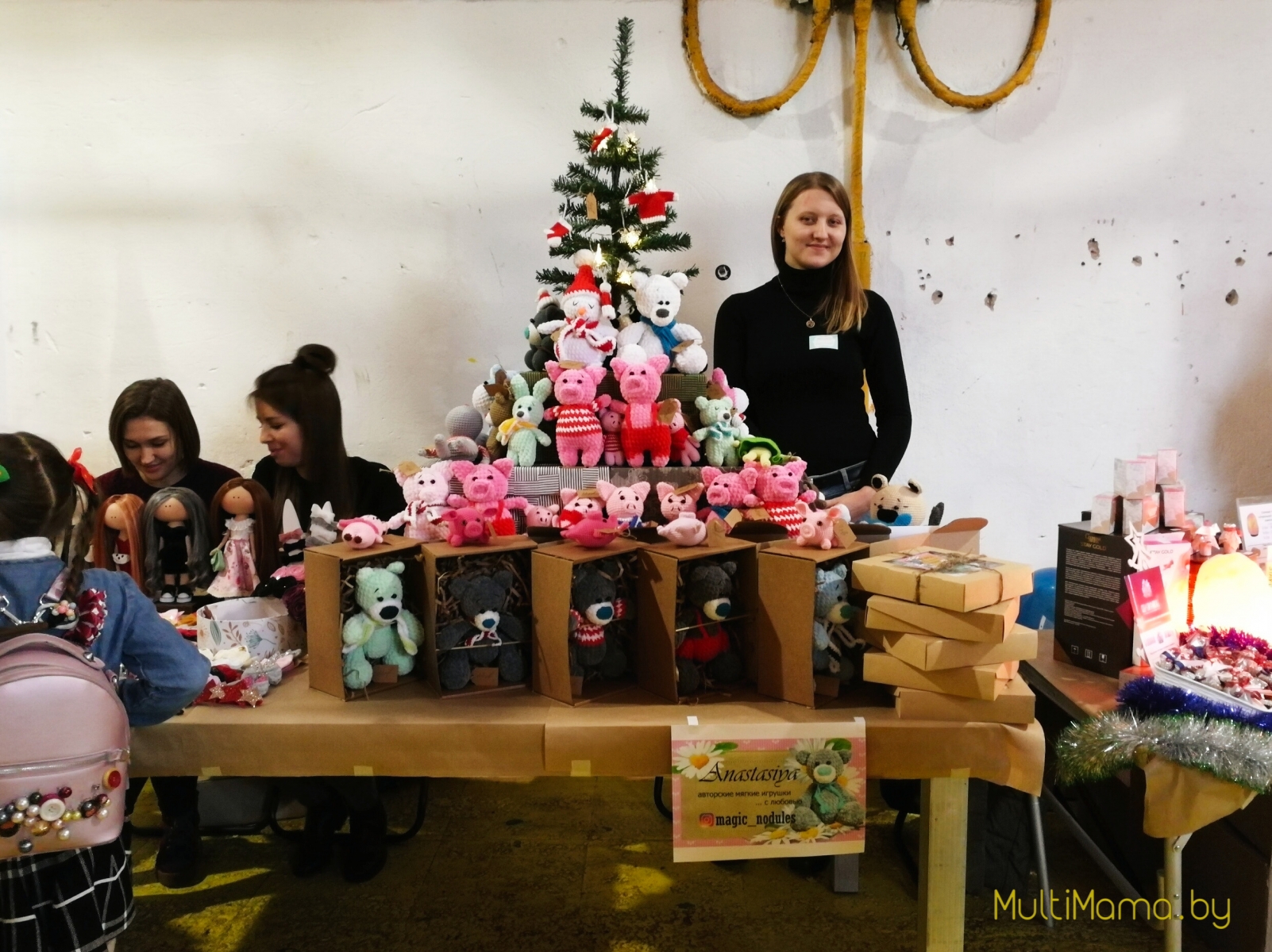 Прогулявшись по рядам, можно было выбрать чудесные и какие-то волшебные детские альбомы от Магазина «А-Лиса» (@a.lisa.by), яркие украшения для малышей от @mimikids_by, разнообразные детские развивающие игры от Магазина «Умница» (@umnitsaby), деревянные ёлки и ящички от Магазина «Буратино» (@buratino_shop.by), забавные вязаные игрушки от @magic_nodules, забавных свинок от Кристины Данчук (@tortik_dankris).