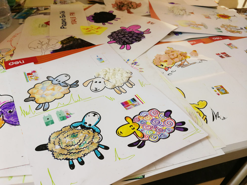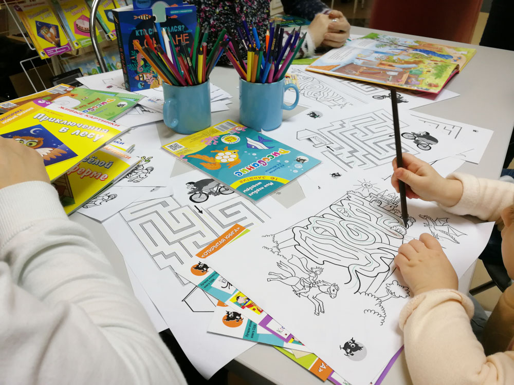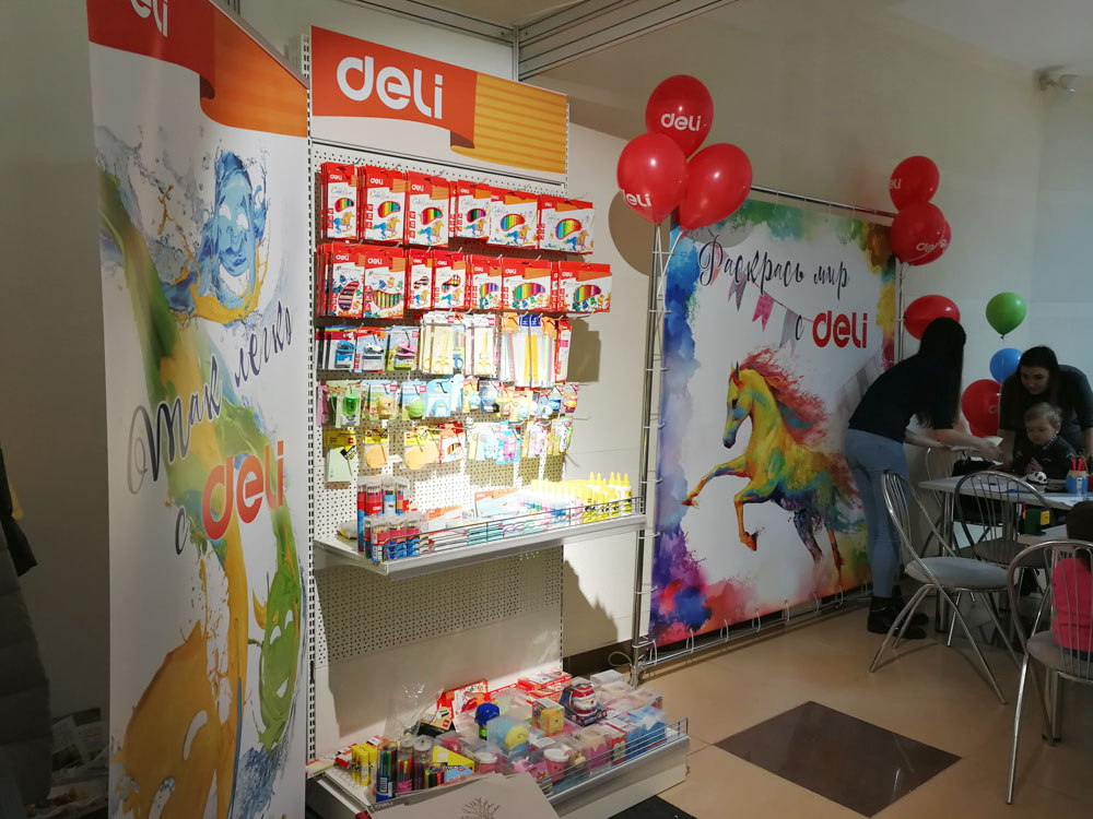 Яркую и завлекательную зону канцелярских принадлежностей «Deli» можно было найти по толпящимся деткам. Ведь тут для них был организован прекрасный красочного уголок для развития с различными мастер-классами: дети рисовали, клеили и придумывали разнообразные варианты преображения черно-белых эскизов!